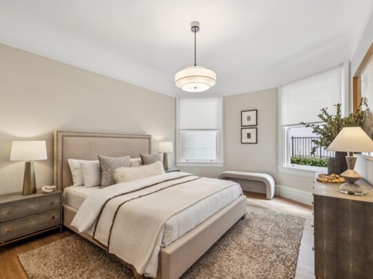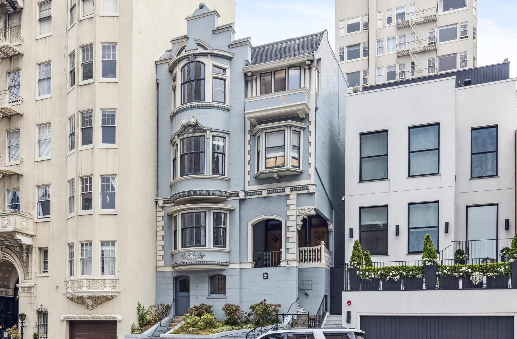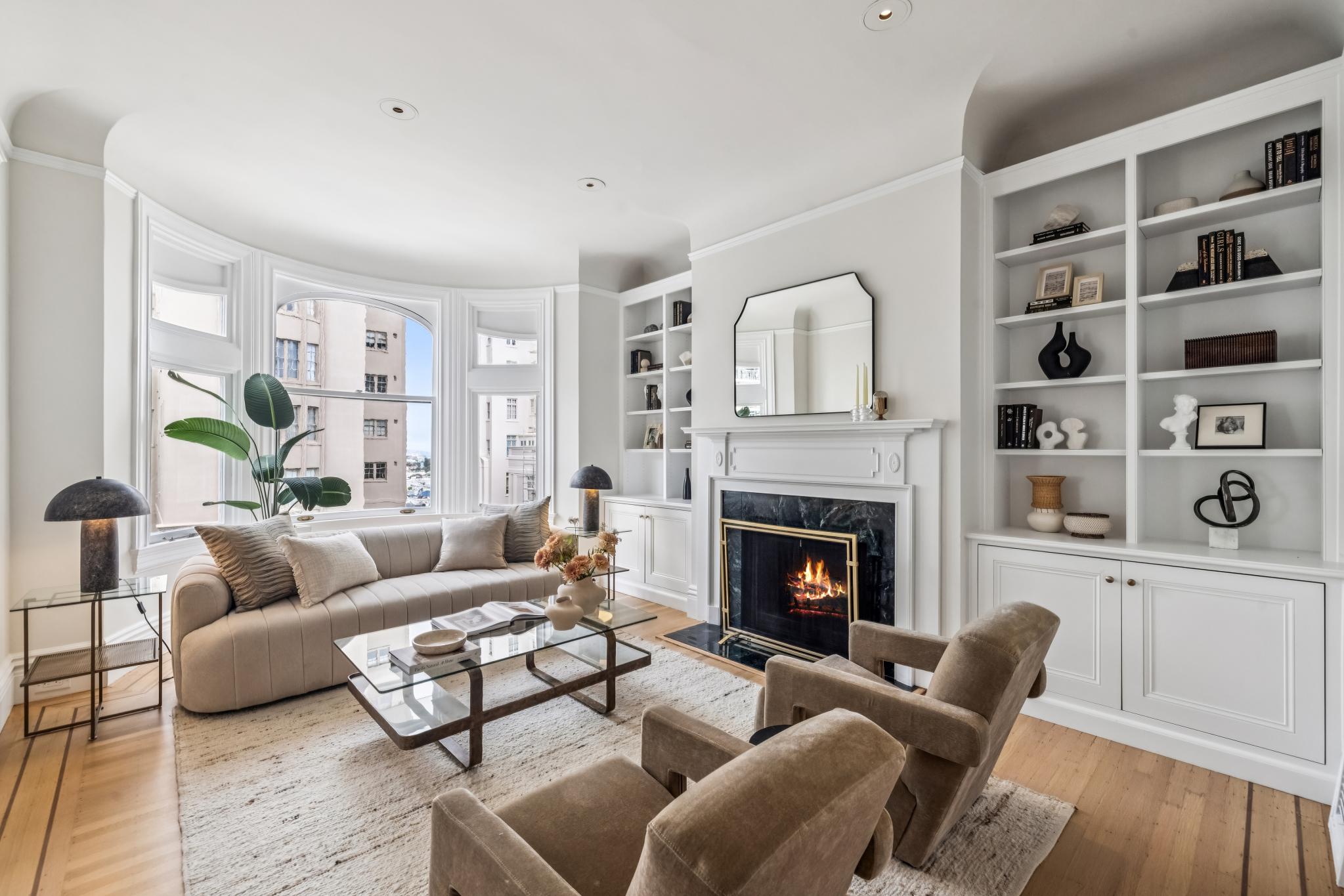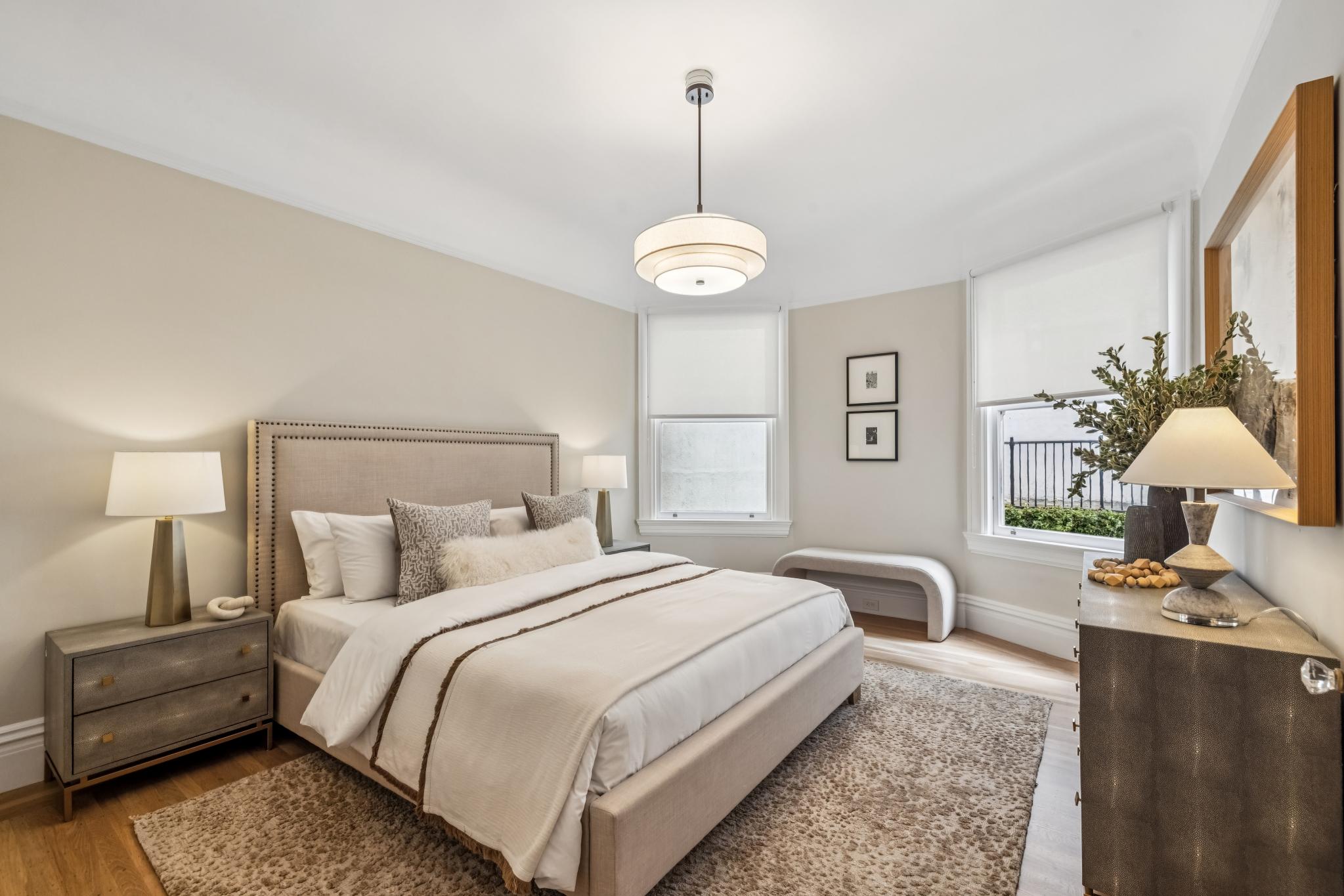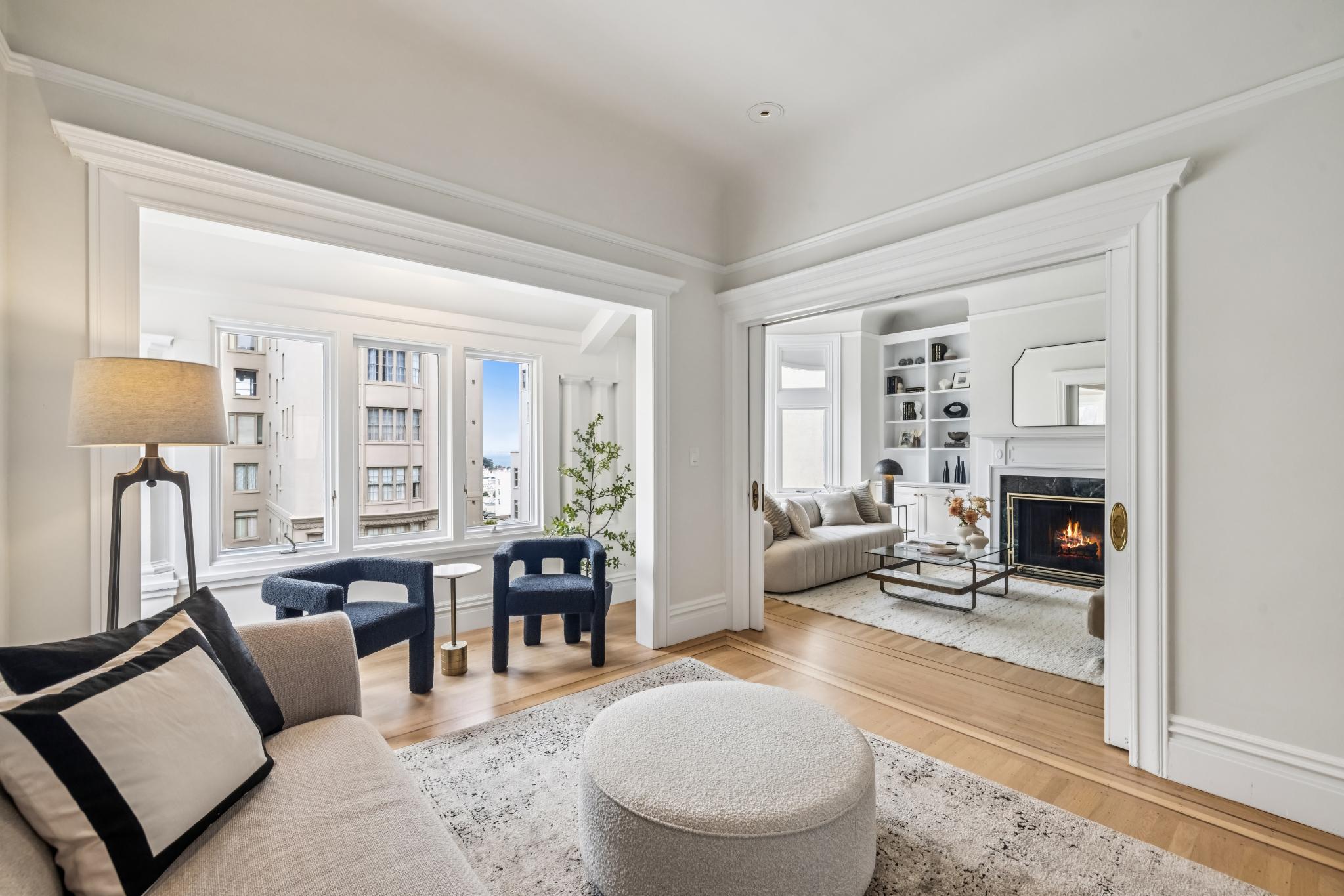 Perfectly perched atop a boutique Victorian building in Pacific Heights, this sunny full-floor flat offers elegant, turn-key living space with peek-a-boo views of the bay. Blending stunning architectural details with luxurious modern updates, the home features 3BD/2BA and formal living and dining rooms. It has many period details including 10-foot box beam and coved ceilings, wainscoting, multiple fireplaces, stained glass windows, and hardwood floors throughout. Deeded roof rights offer a potential opportunity to create a private roof-top deck. This prime location boasts a 95 Walk Score, with top-tier boutiques and eateries just steps away on nearby Union and Fillmore St.