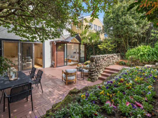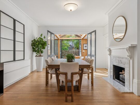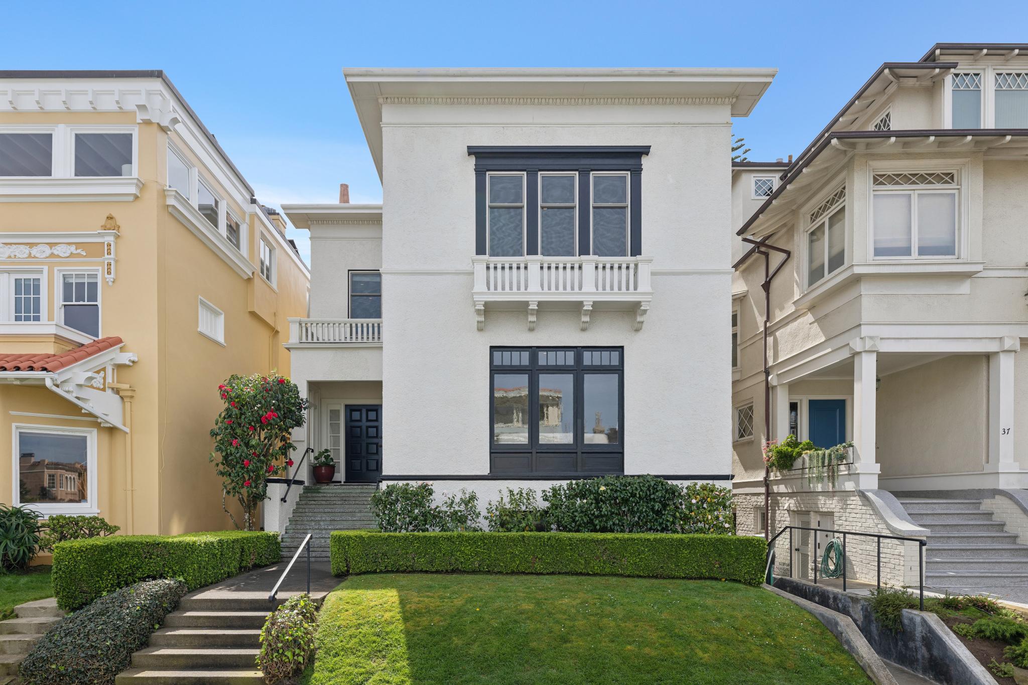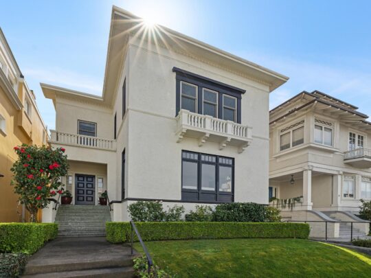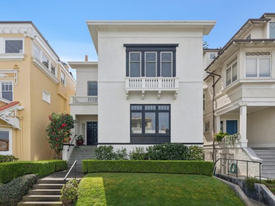 Available for the first time in over 70 years, this elegant renovated home is nestled in the exclusive North of Lake neighborhood, West Clay Park. The home is fully detached and thus filled with abundant light. The main level has a gracious entry foyer, formal living and dining rooms, a large eat-in kitchen, sun room, powder room, and office nook. Remodeled with classic finishes, the sunny kitchen opens on the same level to a deck and lush landscaped garden designed by noted landscape architect Lawrence Halprin. Upstairs are four generous bedrooms, including a primary suite with peek-a-boo Golden Gate Bridge views, and an additional bath. The lowest level offers an additional bedroom and remodeled bath, laundry room and generous storage. There is an elevator to all levels. Detached one-car garage off the rear alley. The home has been lovingly maintained with beautiful period details intact, and extensively renovated as well. Incredible location with easy access to all the Presidio has to offer as well as local favorites Angelina’s Cafe, Pearl 6101, Clement Street, Sacramento Street and Baker Beach, “very walkable” according to WalkScore. There is an incredible community on this block; West Clay Park is a throwback in time with a very tight community that joins together to celebrate holidays, kids ride bikes and play ball in the streets and adults can easily stroll to the shops and restaurants nearby on upper California and Clement Street. A real gem that won’t last.